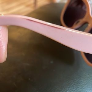 These are pretty dark, but in the light you can see the tortoise print. The inside are a pinkish cream. There are a couple of marks in these as shown in last pictures. High quality, pretty large frame. Had prescription in them so would need to be changed out. Gorgeous glasses! Comes with case and cloth. Check out closet for bundle deals!