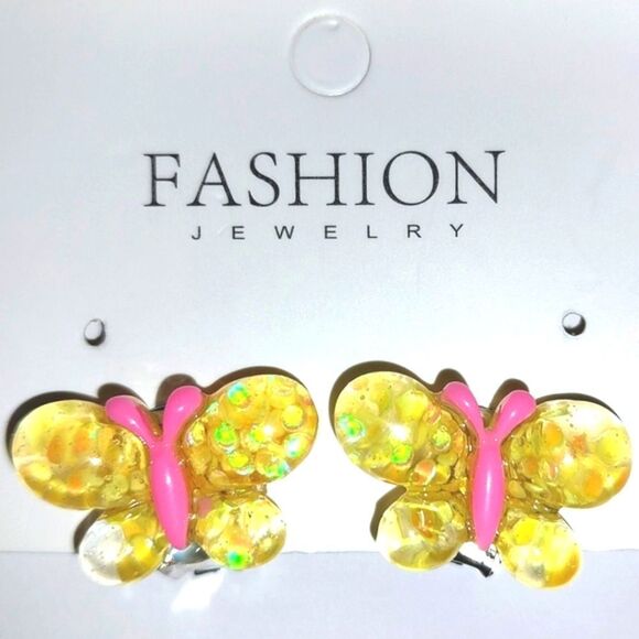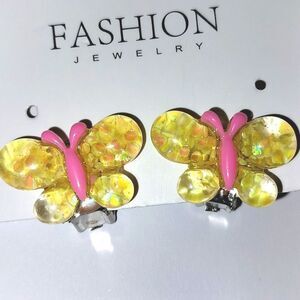 Beautiful girls yellow butterfly clip-on earrings for kids