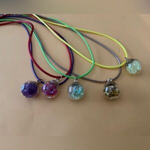 I just finished these very cute and very unique glass pendants, measuring 22” with cord and pendant together. Great for gifting or wearing!