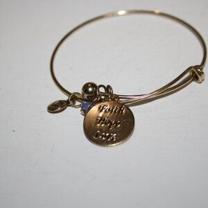Beautiful gold Faith Hope Love bangle bracelet One size fits most