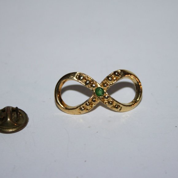 This is a beautiful gold tone and emerald green lapel pin. It's 1" long