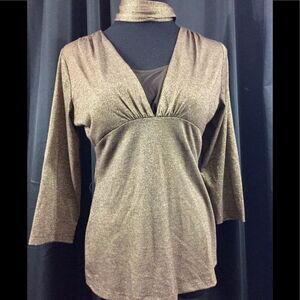 Beautiful gold blouse with faux brown tank attached. Can be worn with or without belt. Great condition.