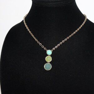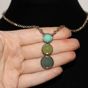 Beautiful gold, turquoise and green Trifari statement drop necklace 16-18"