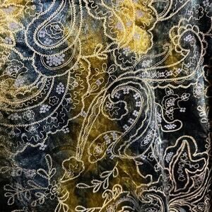 Beautiful goldish brown, blue, and black paisley print long sleeve velvet sparkly top size 28/20