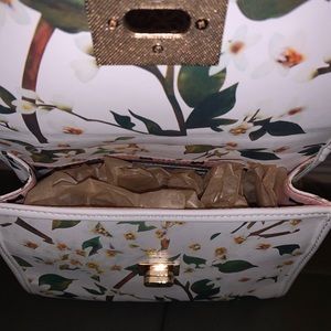 Gorgeous flower print with white background handbag... very well suit for the spring and summer accessorize for any woman. This handbag is brand new comes with a strap as well for over the shoulder or carry.