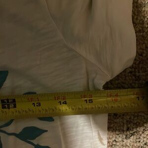 This lovely white T-shirt from J. Crew features a beautiful and symmetrical floral and plant pattern on the front. The design is a vibrant mix of turquoise blue, sunny yellow, and olive green, creating a stylish and eye-catching look. The classic crewneck and short sleeves make this a comfortable and versatile top, perfect for adding a pop of color to your casual wardrobe.