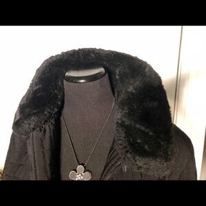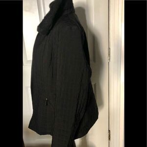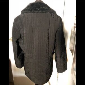 Great versatile jacket by Gallery in size extra large. Faux fur collar can be removed. Has zippered pockets. Can be washed in the machine. Very light wear. Measured across from armpit to armpit is 23” and the length is 28”.