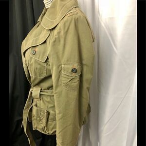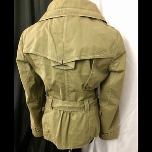 Fun olive green jacket for spring or fall by Marc Aurel in size 40/8. Lots of interesting details in this jacket. Has 4 pockets in the front and one on the left sleeve. Is completely lined. Has a asymmetric detail on the back . No rips or stains and in excellent condition.