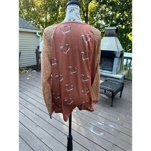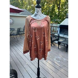 Beautiful lace sleeve, heart design, long sleeve top, Size Xl