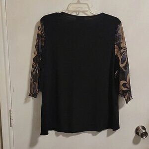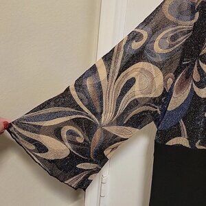 Elegant Beautiful ladies Blouse, Dark colors and design make this great for going out, dinner on a cruise or the office! Size is missing from tag. I estimate this to be a medium. Fabric is soft and stretchy