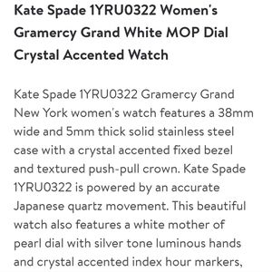 Really nice Kate Spade New York Gramercy grand white mother of pearl dial with crystal accent! Great investment!