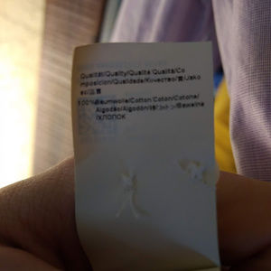 100% cotton very nice shirt by Boss. It's sort of lavender but tends toward the grey. Muted but very masculine coloring. Wore it a few times, but no signs of wear. Don't mind the wrinkling, it's been in storage!