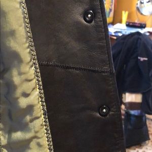 Pistachio green butter soft leather with black leather trim (inside cuffs, collar and front).
