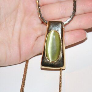 Beautiful long, gold and green cats eye statement necklace 30"