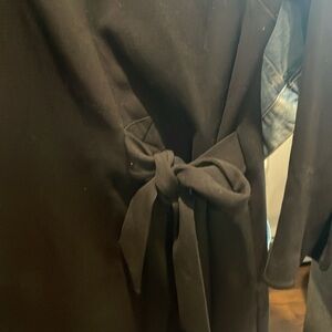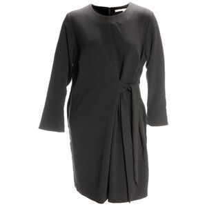 Elegant Black Long-Sleeve Dress with Side Tie Detail. This sophisticated black dress features a classic round neckline and long sleeves. It has a flattering silhouette with a unique tie detail on the side, creating a draped or cinched effect that adds visual interest and defines the waist. Perfect for a polished and modern look, suitable for various occasions!