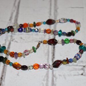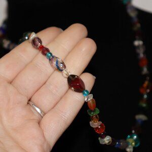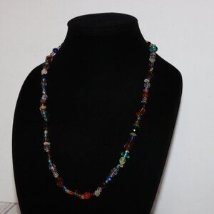 There is a clasp. Beautiful condition. Stunning colored glass beads.