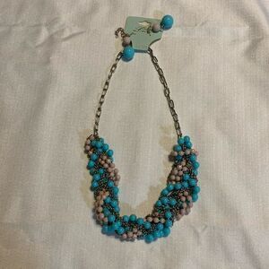 Beautiful multi strand necklace turquoise, blush & silver necklace & earring NWT