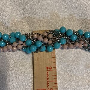 Beautiful multi strand necklace turquoise, blush & silver necklace & earring NWT Smoke free & Pet free home. See photos for complete description/details.