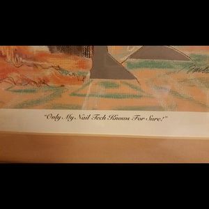 For the tech in your life this is a perfect piece for their salon. This peice was uniquely done in colored pencils. It hung in my nail salon and caught the attention of my clients because its a unique and an original peice and signed by the artist. It measures 23'x18'. The frame isn't included unless requested open to reasonable offers!