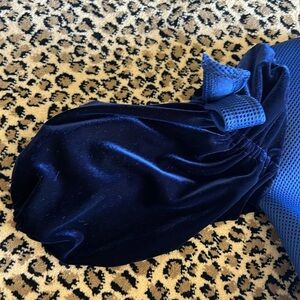 Used but excellent condition (worn once) navy blue dress with sleeves (elastic on sleeve). Zipper on back, a-line skirt. Please note hand was or dry clean. This is a beautiful dress.
