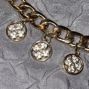 Beautiful necklace with charms 17” long nice n solid has rhinestones brand new