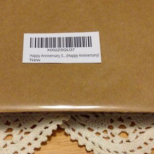 New card with a beautiful heart made of raised paper roses on a strip of burlap. Very nice for anniversary.