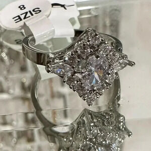 Beautiful new ring silver band clear stone and ornate stone setting rhinestone