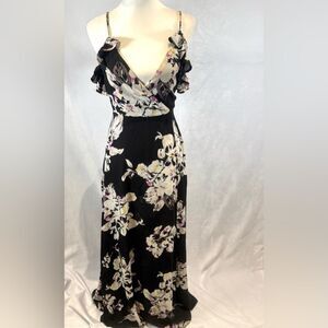 Beautiful off shoulder ruffle floral faux wrap maxi dress size small