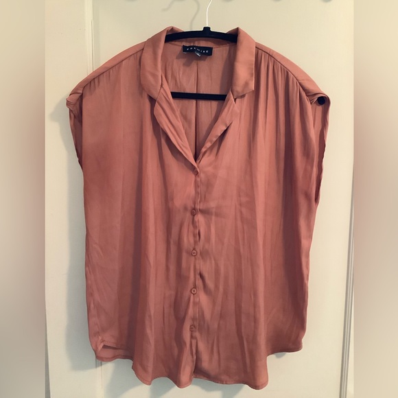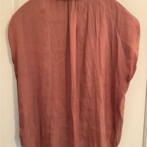 Burnt orange, loose fitting, collared, short sleeve blouse. V neckline. Soft and comfortable.