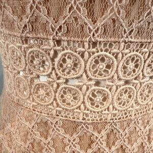 Lace dress with peekaboo embroidered lace midriff and see through lace chest and back. Zipper back. EUC