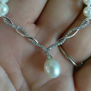 This gorgeous necklace can add Elegance to any occasion, beautifully detailed with diamonds and white gold to match the fine pearls.