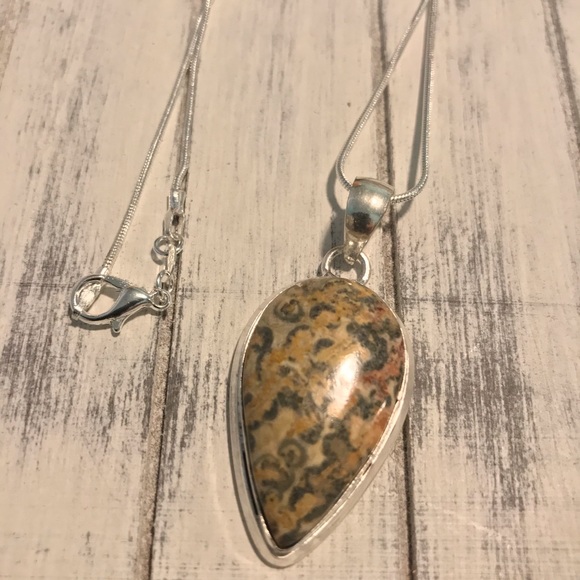 Jasper Stone pendent Stone handmade piece.925 silver 18 in chain w/ pendent 1.58 in