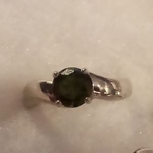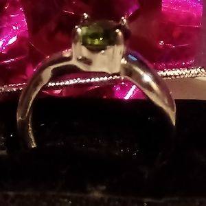 Sterling silver bezel set ring with one 8.00mm round peridot.