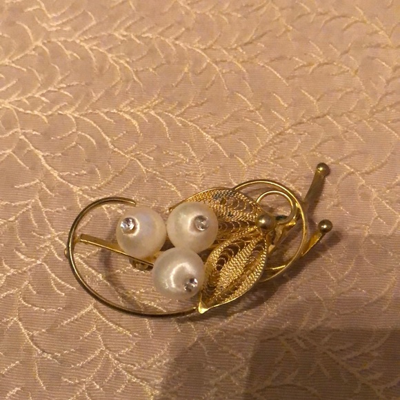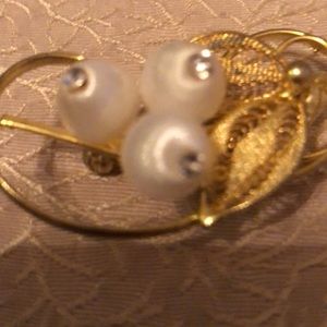 Gold with white satin balls 2” Leaf design Very pretty