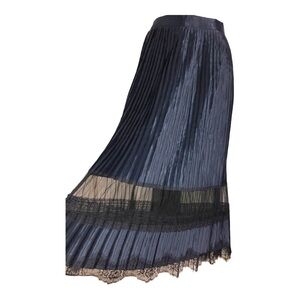 Beautiful pleated navy blue & black lace peek a boo satin effect goth skirt sz L