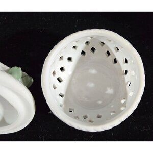 Vintage white and pink roses porcelain box for rings or for scented fragrance as there are tiny perforations to let a scent through. Adorable box no damage