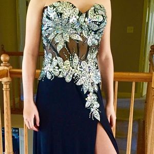 Strapless corset style long prom dress, sequin prom gown ordered off of promgirl. Worn once in great condition! No need for me to have it anymore so just trying to get rid of!