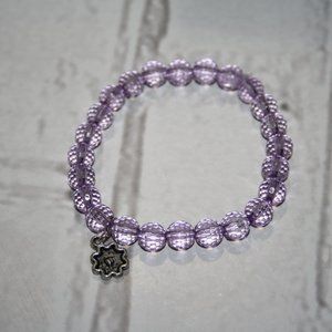 Beautiful purple beaded flower charm bracelet 7" NWOT