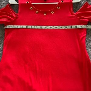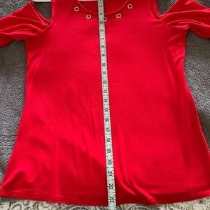 Beautiful red “cold shoulder” red top with gold accents. Excellent condition