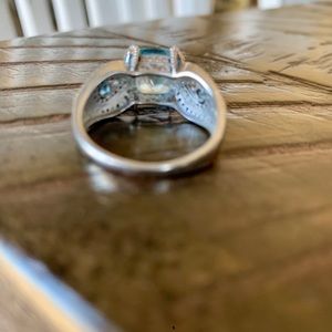Beautiful used Blue topaz and blue diamond sterling silver ring size 10