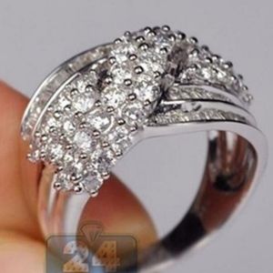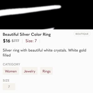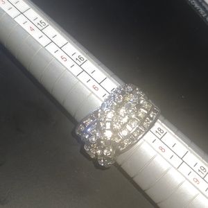 Awesome fashion silver colored ring with white crystals. White gold filled.