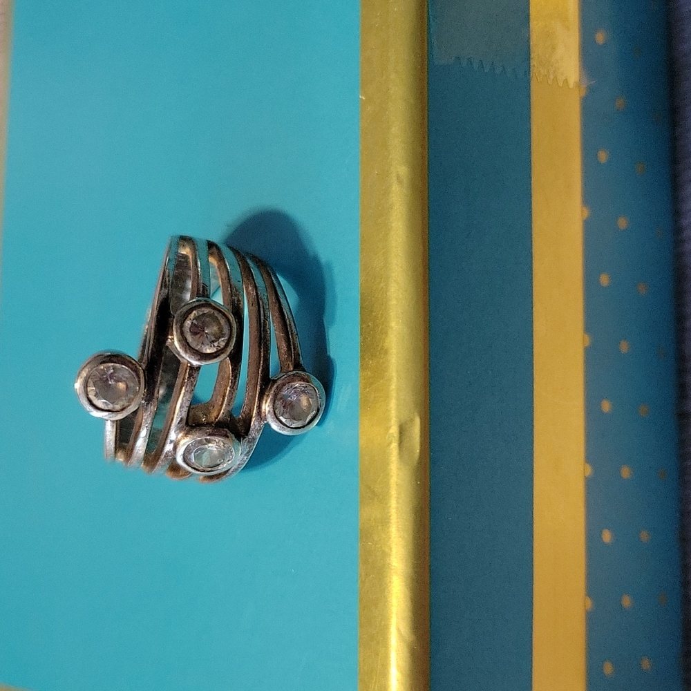 Size 8 Used condition Stamped PDI Silver Plated 4 CZ BIG BOLD ARTISAN DESIGN