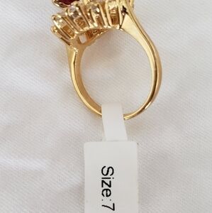 Beautiful Park Lane ring New size 7. I'm selling my Jbpl inventory collection. I'm not sure of the name or stones. I'm assuming faux diamond stones and faux ruby red as a center. Rhodium is usually the hardware. If I find more specific details I will update. Jbpl is a great company in business for over 55 years. Beautiful craftsmanship and hardware. If you take care of this ring I'm sure it will last forever.