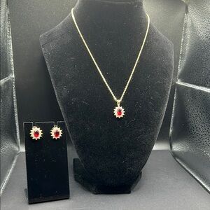 Beautiful ruby red and clear crystal necklace and earring set