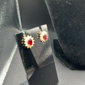 Beautiful ruby red and clear crystals set including necklace and earrings set in gold tone.