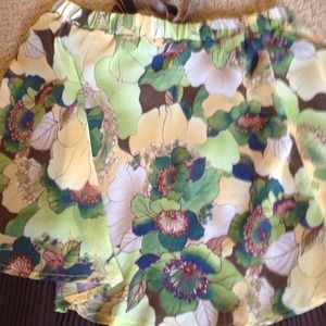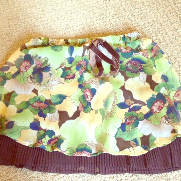 This is from a boutique in Charlotte, NC. The brand is Beau bois A very unique floral skirt with beautiful shades of greens and browns. Size S. 100% polyester