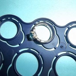 Elegant and exquisite Topaz Ring, 10k. Classic and will shine forever. Beautiful scalloped sides with diamonds. The pictures really do not show how beautiful it is. Soo pretty. Perfect as a first grown up ring. Perfect condition, like new! So elegant. This ring was listed as size 4.5 when purchased, but it seems closer to a size 4 when it is put on the sizer. This is the most exquisite ring.