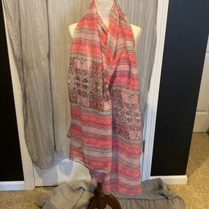 This is a beautiful, lightweight scarf or wrap, multicolored, main color, pink, purchased, and Portugal.