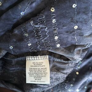 Beautiful sequence top with embroidery stitching and iridescent sequence beads. Navy blue hombre. Crewneck line with a V cut out and silver bar embellishment. Three-quarter sleeve with the elastic banding . New with tags JM Collection, XXL from Macys. Can’t describe how soft this top is.