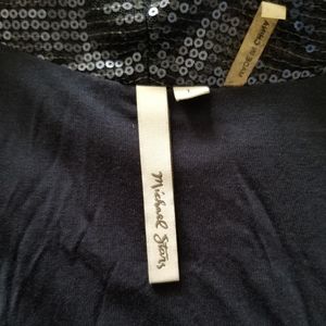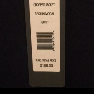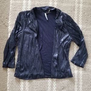 Beautiful 3/4 sleeve sequin blazer. There are few sequins missing from the bottom of the sleeve, inner part so not noticeable. It's size L but fits like S/M. Navy blue.
